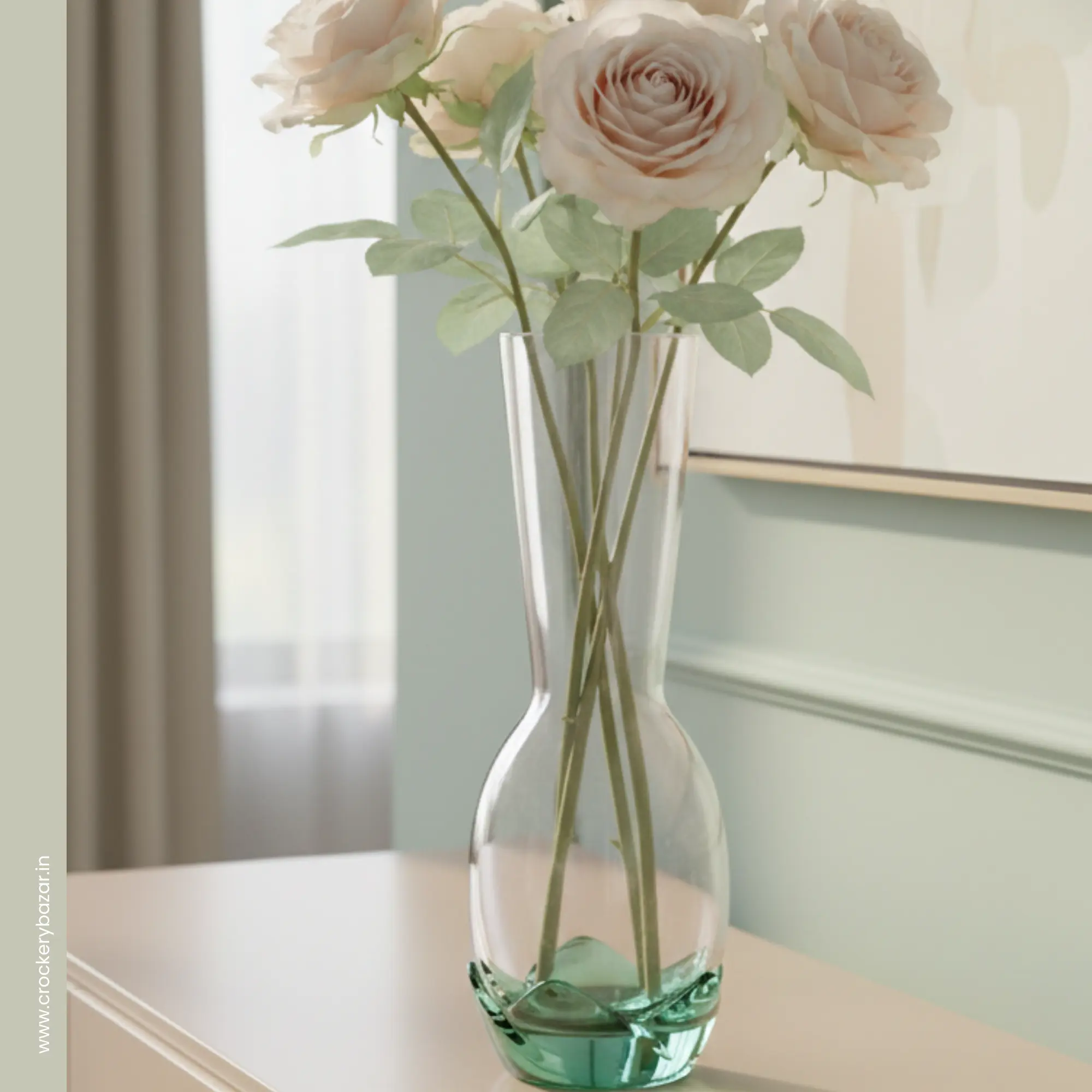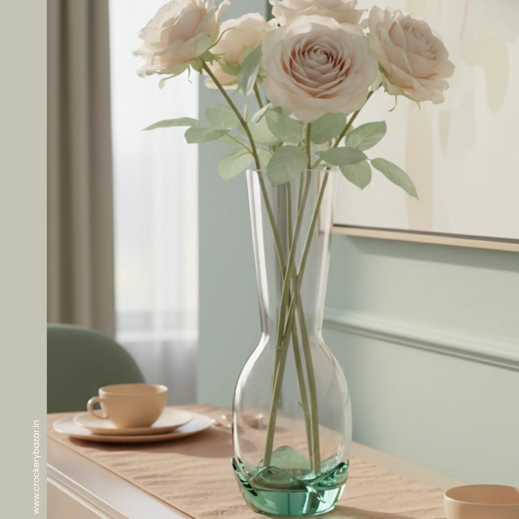 If you are looking for a vase for bedside table décor, this piece adds a calm, fresh, and elegant touch to bedrooms. Pair it with soft roses, carnations, lilies, or even simple green foliage to create a soothing ambience. It also works beautifully as a vase for corner spaces in living rooms, hallways, entryways, or balcony corners, transforming empty areas into thoughtfully styled focal points.