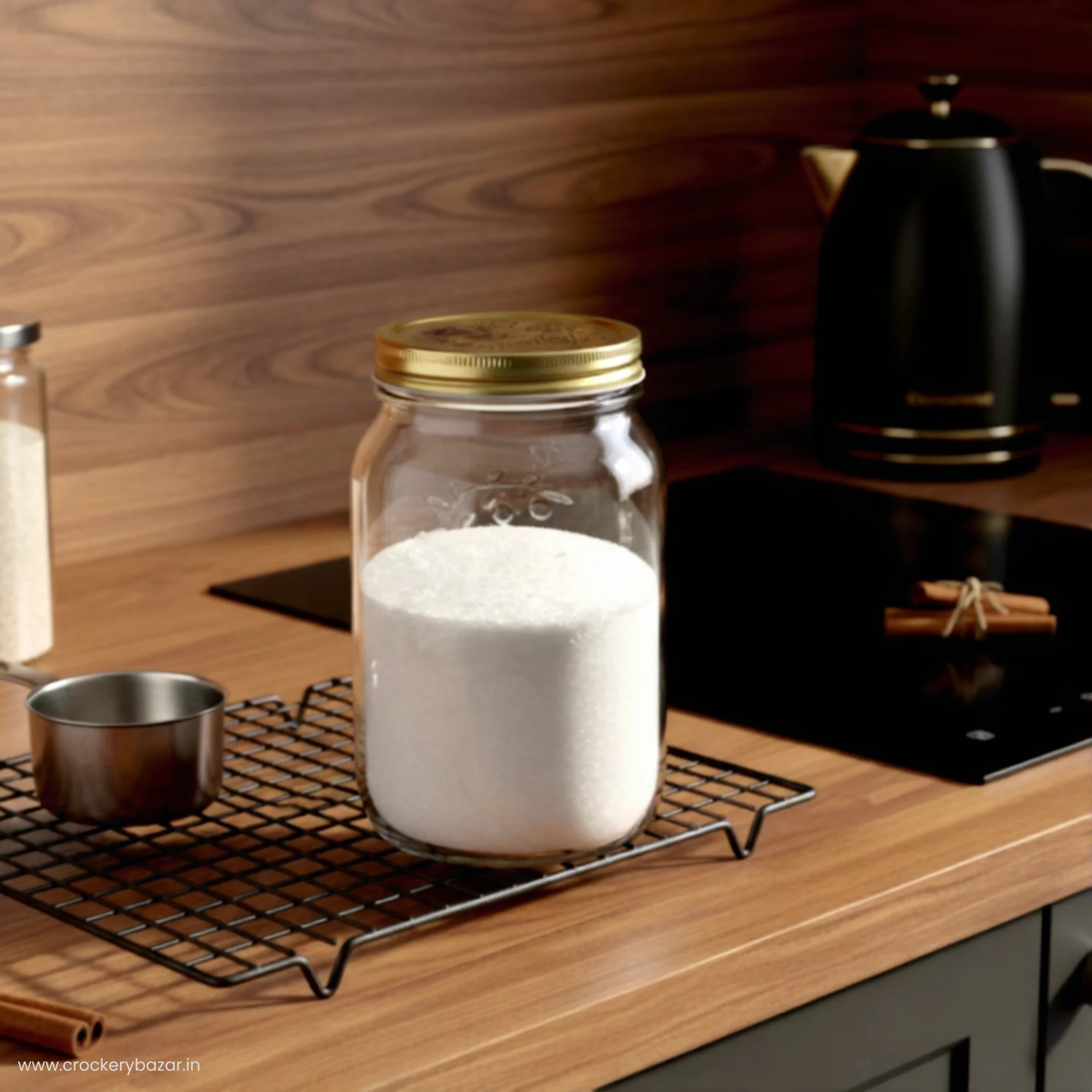 The jars are engineered with a 21 cm tall slim cylindrical body, 83 mm wide mouth, and 11.3 cm base width, offering generous capacity with easy filling and easy cleaning. The highlight is the stylish golden metallic lid, built with an internal sealant that prevents air and moisture from entering the jar. This airtight functionality helps retain freshness and prevents soggy textures in items that demand crispness and flavour.