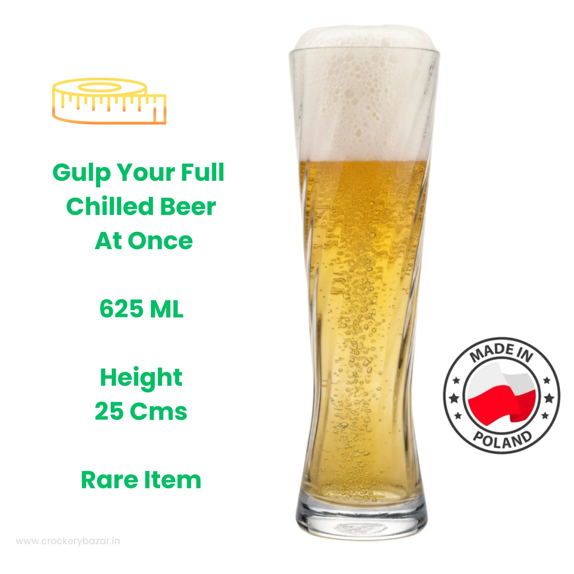 Across India, beer culture varies as widely as its celebrations. In a Punjabi wedding, where the dhol never stops and energy runs high, beer flows just as freely. In Bangalore and Mumbai, corporate crews wind down on Friday evenings over craft lagers and IPL screenings. For such occasions, a standard mug simply can’t keep up. This 625ml rare tall beer glass turns the event into an experience.