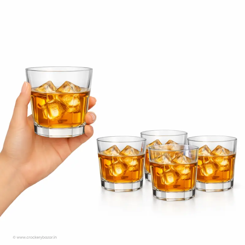 As a staple in fine bars and restaurants from Hyderabad to Pune, the Bristol shape is built for those who appreciate the ritual of a good drink. The extra-clear glass beautifully showcases the amber hues of your bourbon while maintaining its crisp transparency over time. Choosing this whiskey glasses premium collection means investing in glassware that prioritizes both form and function. Each piece is a testament to the high standards of Brazilian glass manufacturing, brought to you exclusively to ensure your table always looks its best. Sold by Crockery Bazar.